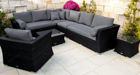 Este exclusivo conjunto de salón de «diseño de muebles Ragnarök» llama la atención en todos los jardines debido a su diseño curvo y ofrece espacio suficiente para 12 personas.