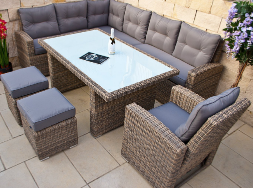 Este exclusivo lounge set es una auténtica joya por sus detalles especiales, muy popular y ofrece espacio suficiente para hasta 10 u 11 personas.